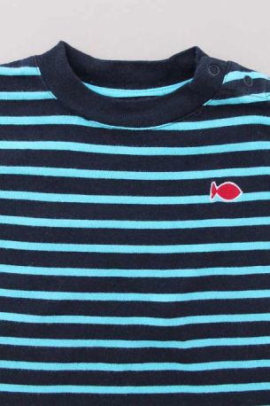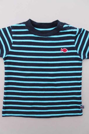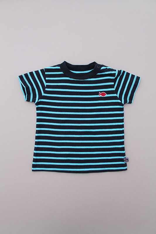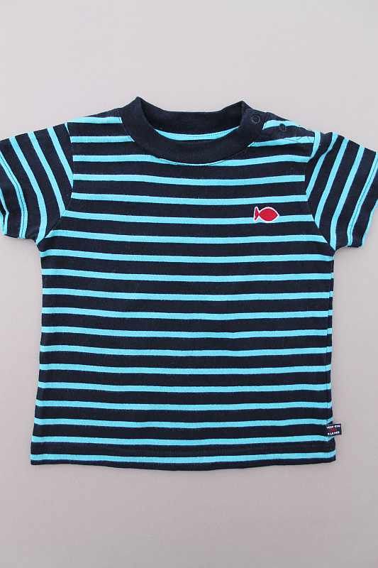 Tee-shirt stretch en jersey bleu marine foncé à manches courtes, pour bébé garçon 6 mois, idéal pour la mi-saison, le printemps ou l'été, très confortable à porter, avec motif poisson...