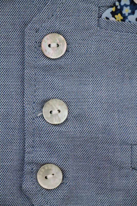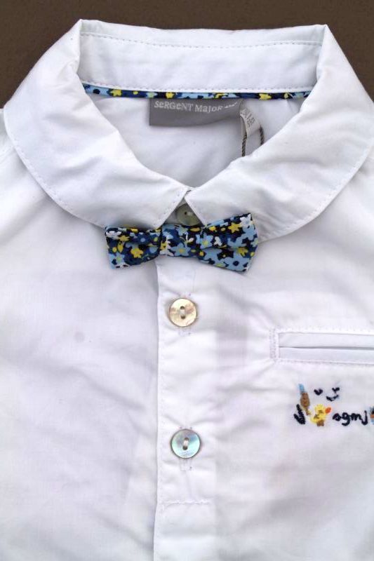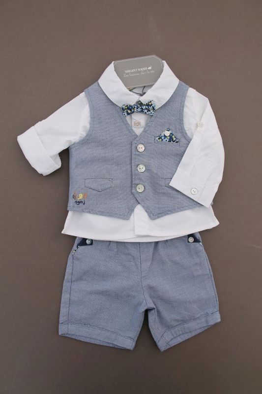 Tenue cérémonie 4 pièces Sergent Major Sergent Major Ensemble habillé 4 pièces, pour bébé garçon 3 mois, idéal pour une cérémonie au printemps ou l'été, comprenant une chemise blanche, un veston bleu sans manches, un bermuda bleu à bretelles et un noeud papillon imprimé floral. Composition : 100% coton. Lavage à 30°. Chemise : Largeur carrure : 21 cm. Largeur sous les bras : 24 cm. Longueur manches : 13 cm. Longueur épaule - base : 27 cm. Gilet : Largeur sous-bras : 24 cm. Longueur épaule - base : 23 cm. Bermuda : Longueur totale : 22 cm. Longueur entre jambes : 8 cm. Occasion en excellent état, comme neuf (chemise neuve avec étiquette) (valeur neuf : 78,99 €) Taille En stock Expédié en 24/48h Quantité AJOUTER AU PANIER BébéMarques vous conseille également Gilet jaune mi-saison Sergent Major Cardigan en coton piqué jaune, pour bébé garçon 3 mois, idéal pour le printemps ou l'été, avec une poche avec écusson brodé côté coeur et par 5 boutons-pression. Composition : 100%... 8.90 € 3 mois Votre article a bien été ajouté au panier Quantité : × Partager et faites découvrir cet article par mail Vous souhaitez faire connaître ce produit à vos ami(e)s ?Inscrivez simplement leurs noms, prénoms, e-mails et votre message d'accompagnement.Ils pourront ainsi venir directement sur la page que vous avez sélectionnée. Nom(s) et/ou prénom(s) de vos ami(e)s E-mail de vos ami(e)s Votre nom et/ou prénom Votre E-mail Votre message d'accompagnement (1000 caractères maximum) : Nombre de caractères restants : Ne remplissez pas cette case