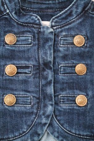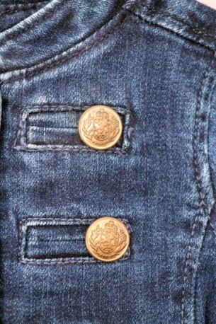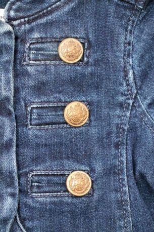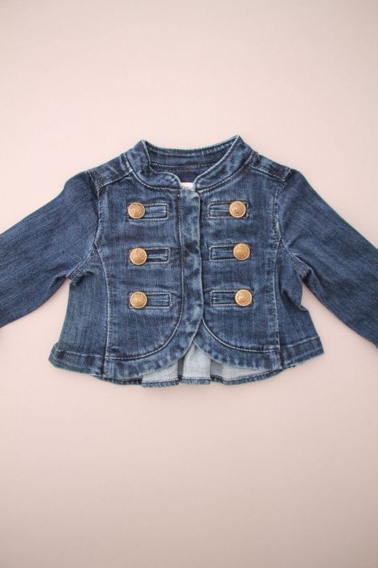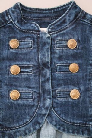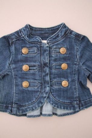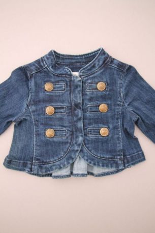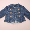 Veste en en denim bleu entièrement doublée, pour bébé fille 9 à 12 mois, idéale pour la mi-saison, le printemps ou l'été, avec 2 poches devant et fermeture par 3 gros boutons.