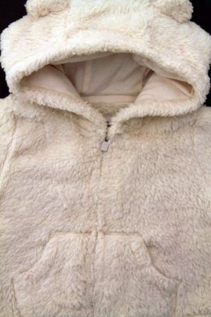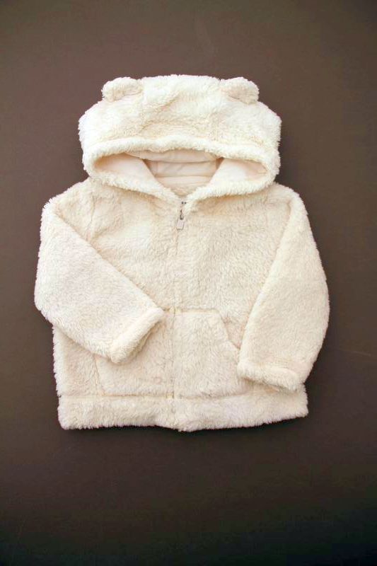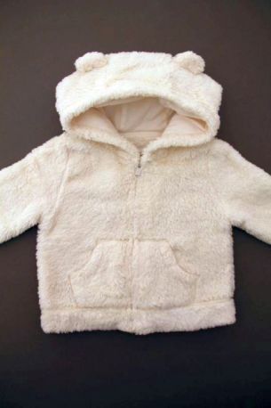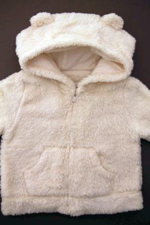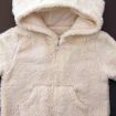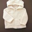 Cardigan mixte en maille torsadée douce beige entièrement doublé en jersey de coton, pour bébé 6 mois, chaud pour la mi-saison, avec fermeture par 2 boutons et 4 pressions.