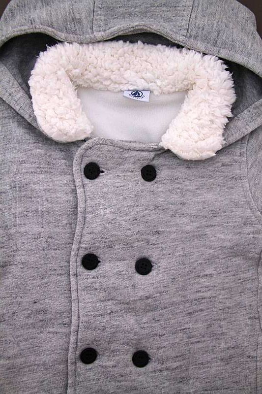 Veste molleton chaude Petit Bateau Petit Bateau Blouson molletonné gris clair chiné, pour bébé garçon 18 mois, chaud pour la mi-saison, l'automne ou l'hiver car corps et poches doublés polaire, avec capuche AMOVIBLE, intérieur du col en sherpa écru et fermeture par 6 boutons. Composition : Extérieur, Doublure manches et capuche : 100% coton. Garnissage et doublure corps et poches : 100% polyester. Lavage à 30°. Largeur carrure : 21 cm. Largeur sous bras : 30 cm. Longueur manches aisselles - poignet : 18 à 23 cm. Longueur épaule - base : 35 cm. Occasion en excellent état, comme neuf (valeur neuf : 79 €). Taille En stock Expédié en 24/48h Quantité AJOUTER AU PANIER BébéMarques vous conseille également Veste bleu marine chaude Jacadi Manteau court doux bleu marine, pour bébé garçon 18 mois, chaud pour l'automne ou l'hiver, avec fermeture par 4 boutons. Composition : 100% polyester. Lavage à 30° Largeur carrure : 24 cm... 25.90 € 18 mois Votre article a bien été ajouté au panier Quantité : × Partager et faites découvrir cet article par mail Vous souhaitez faire connaître ce produit à vos ami(e)s ?Inscrivez simplement leurs noms, prénoms, e-mails et votre message d'accompagnement.Ils pourront ainsi venir directement sur la page que vous avez sélectionnée. Nom(s) et/ou prénom(s) de vos ami(e)s E-mail de vos ami(e)s Votre nom et/ou prénom Votre E-mail Votre message d'accompagnement (1000 caractères maximum) : Nombre de caractères restants : Ne remplissez pas cette case