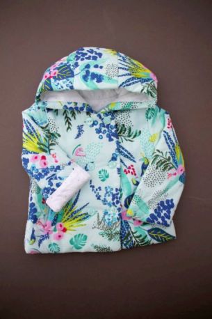 Dors-bien en velours blanc imprimé papillon, poisson et fleurs, pour bébé fille 9 à 12 mois (étiquette marquée 9 mois mais taille grand), chaud pour la mi-saison ou l'hiver, avec poignets et...